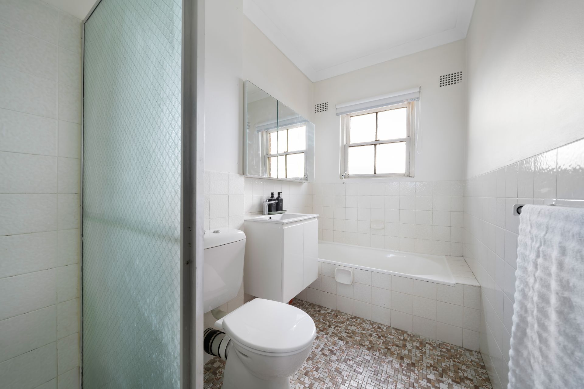 - Main bathroom with separate bath and shower