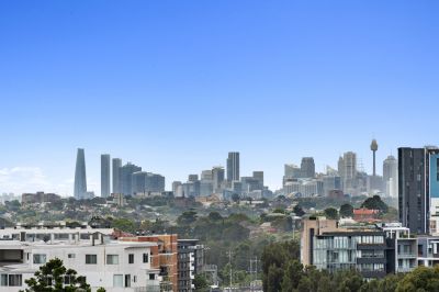 - Spacious sundrenched living area flowing onto generous sized balcony with panoramic City and Botany Bay views