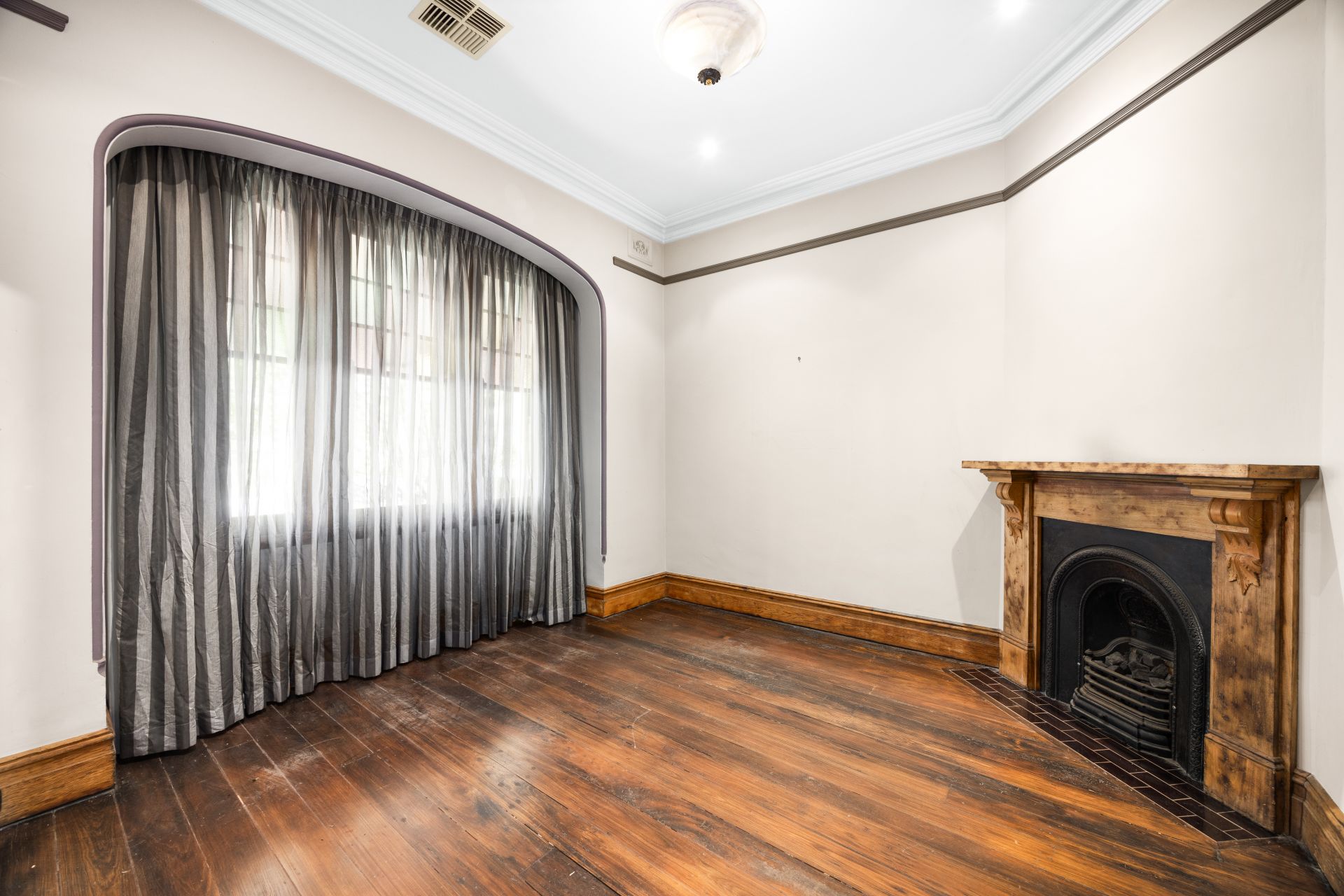 - Open plan living area with ornate fireplace