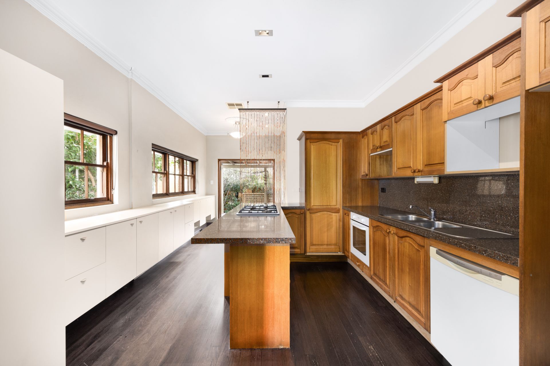 - Large gas kitchen with wrap-around benchtop, dishwasher, oven & great storage