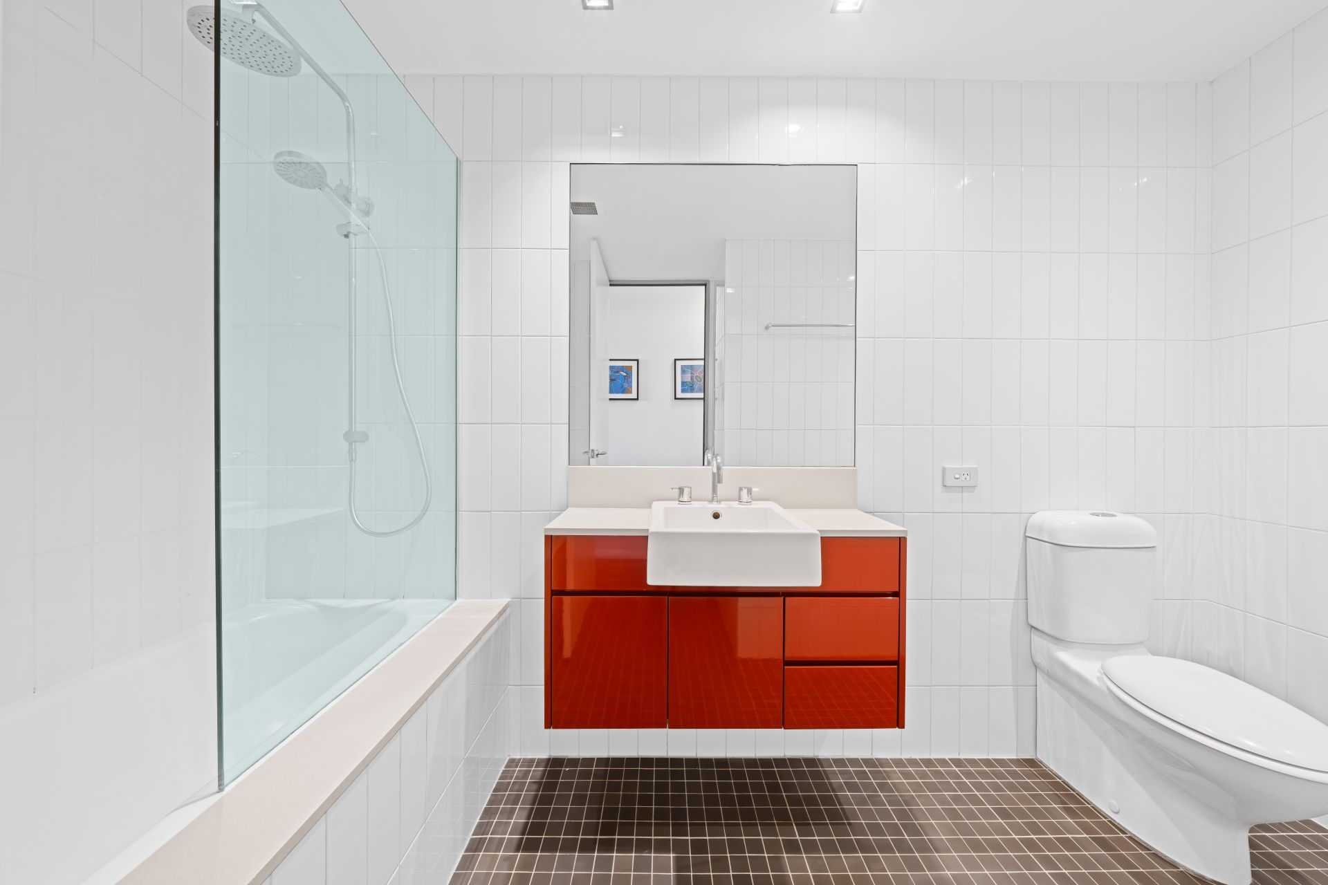- Modern bathroom with combined bath and shower