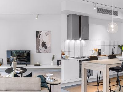 - Open plan living and dining area flowing seamlessly onto a wrap-around, north-facing oversized balcony