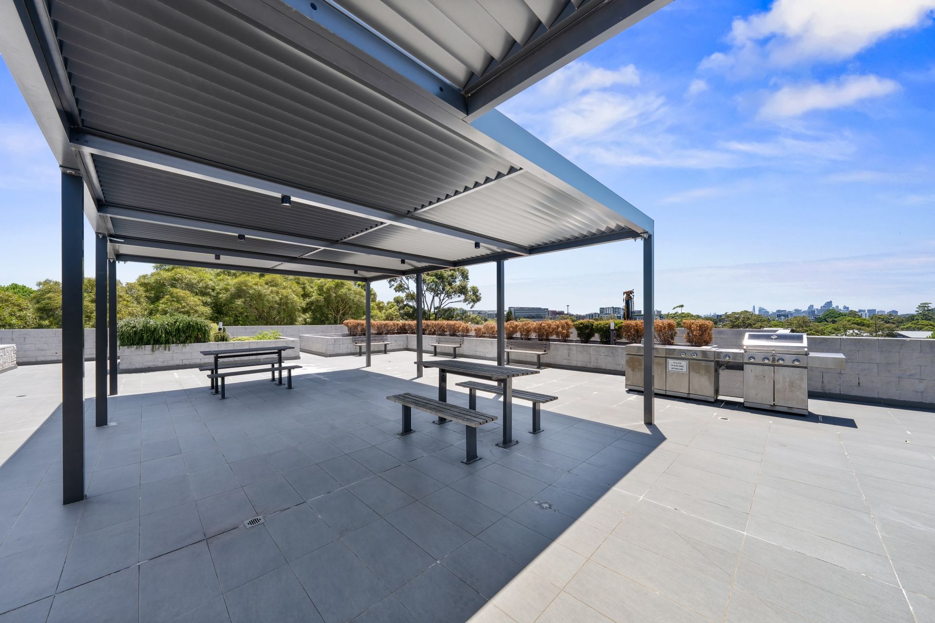 - Communal rooftop with city & airport runway views